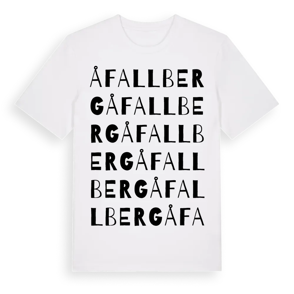 Åfallberg ordlek t-shirt är inspirerad av Åfallberg i Värmlands län, Sverige. Tröjan är designad för dig som har en speciell koppling till platsen – oavsett om du bor här, har rötterna här eller bara älskar Åfallberg.