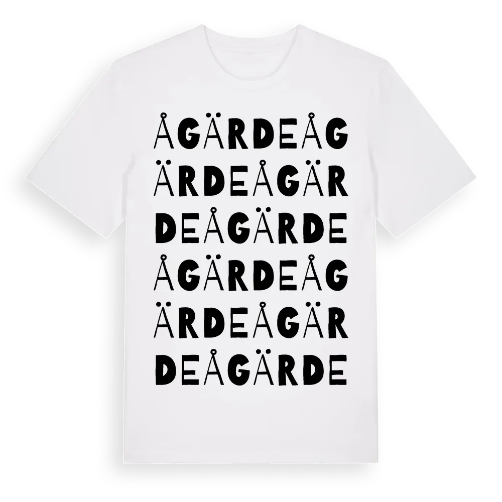 Ågärde ordlek t-shirt är inspirerad av Ågärde i Värmlands län, Sverige. Tröjan är designad för dig som har en speciell koppling till platsen – oavsett om du bor här, har rötterna här eller bara älskar Ågärde.