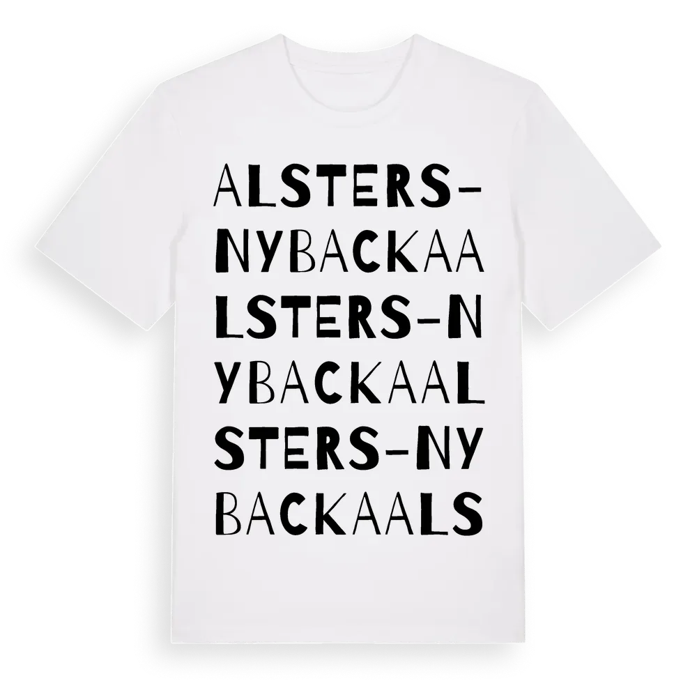 En ordlek byggd på Alsters-Nybackas namn. Subtilt och klurig – ett motiv som bara de som verkligen känner platsen fullt ut förstår. Premium bomull, unisex – från byn Alsters-Nybacka i Värmlands län.
