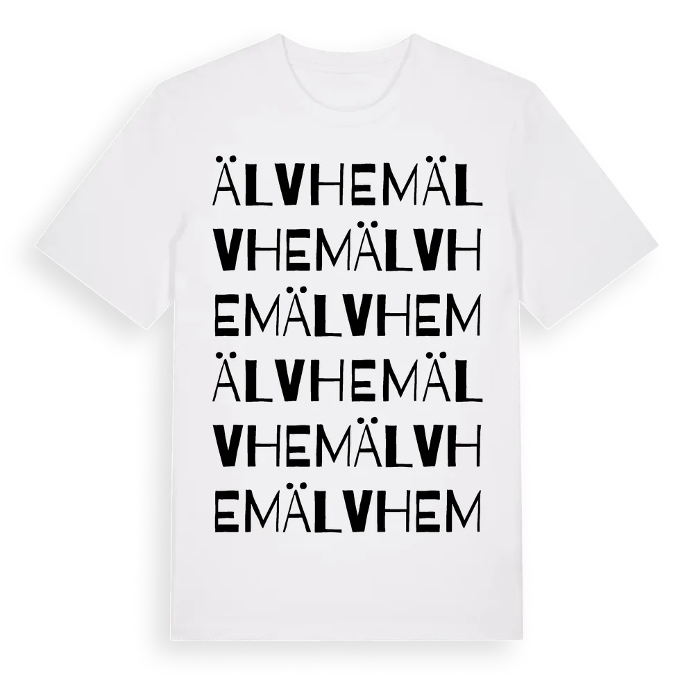 Älvhem ordlek t-shirt är inspirerad av Älvhem i Värmlands län, Sverige. Tröjan är designad för dig som har en speciell koppling till platsen – oavsett om du bor här, har rötterna här eller bara älskar Älvhem.