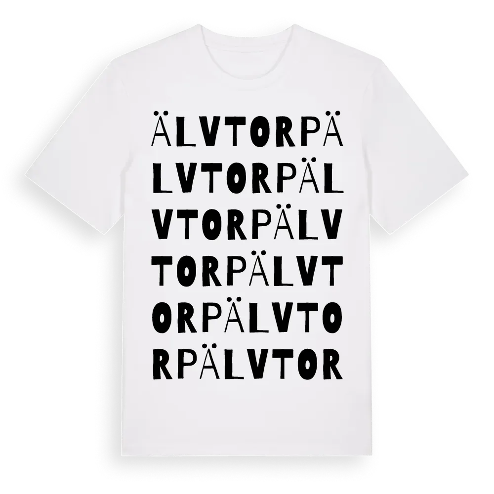 Älvtorp ordlek t-shirt är inspirerad av Älvtorp i Värmlands län, Sverige. Tröjan är designad för dig som har en speciell koppling till platsen – oavsett om du bor här, har rötterna här eller bara älskar Älvtorp.