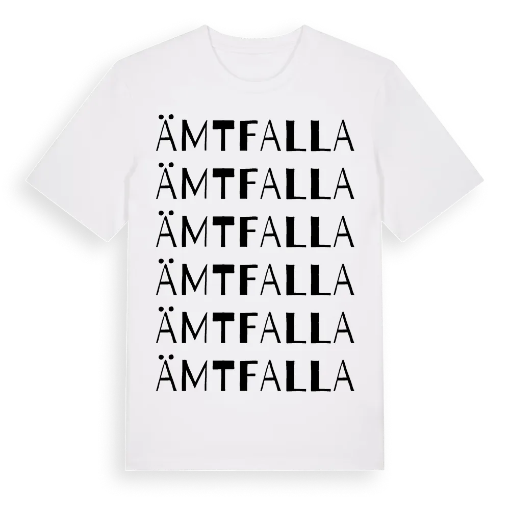 Ämtfalla ordlek t-shirt är inspirerad av Ämtfalla i Värmlands län, Sverige. Tröjan är designad för dig som har en speciell koppling till platsen – oavsett om du bor här, har rötterna här eller bara älskar Ämtfalla.