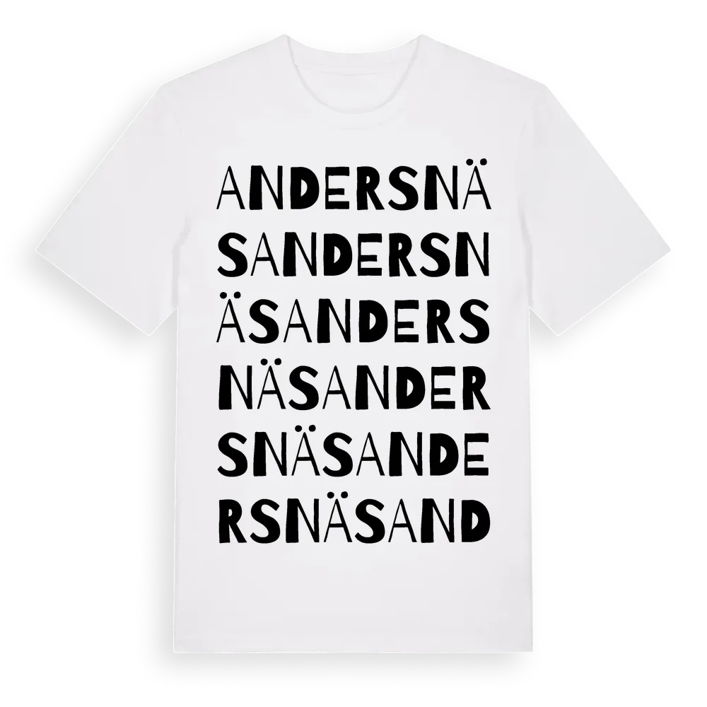 Andersnäs ordlek t-shirt är inspirerad av Andersnäs i Värmlands län, Sverige. Tröjan är designad för dig som har en speciell koppling till platsen – oavsett om du bor här, har rötterna här eller bara älskar Andersnäs.