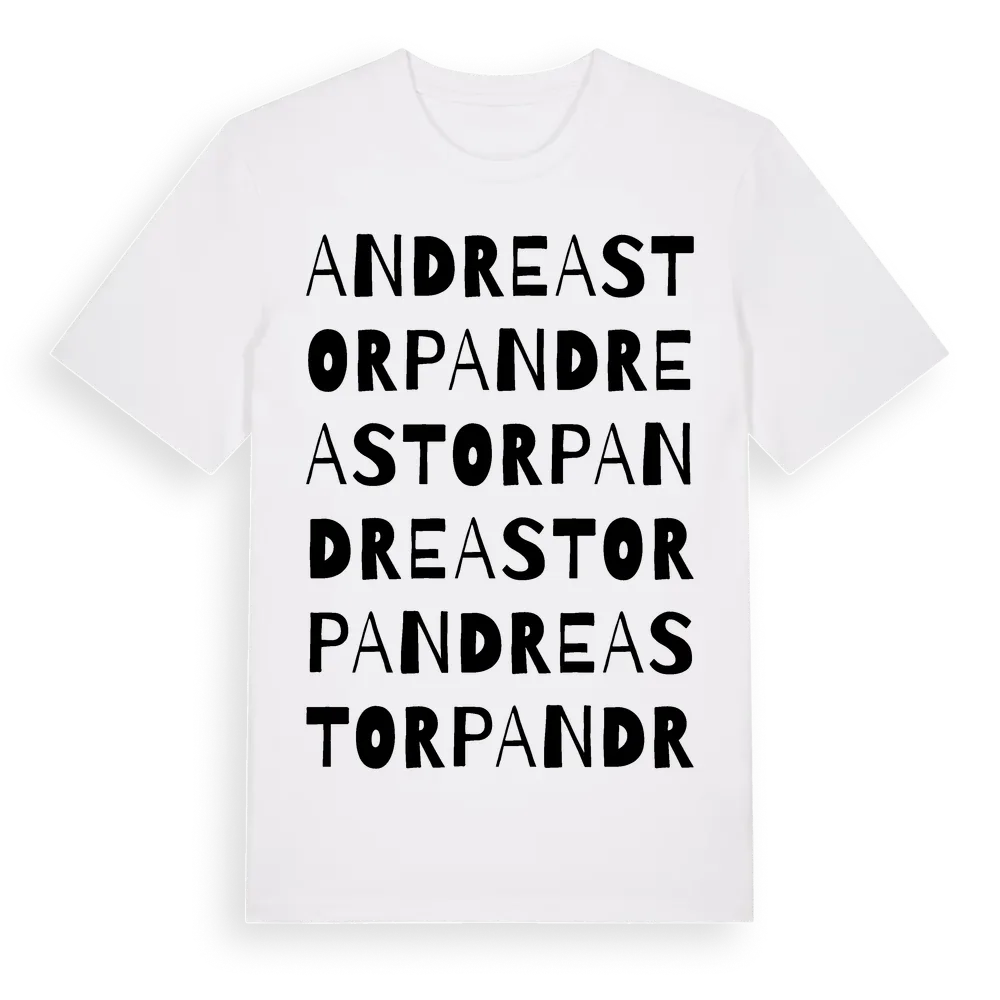 Andreastorp ordlek t-shirt är inspirerad av Andreastorp i Värmlands län, Sverige. Tröjan är designad för dig som har en speciell koppling till platsen – oavsett om du bor här, har rötterna här eller bara älskar Andreastorp.