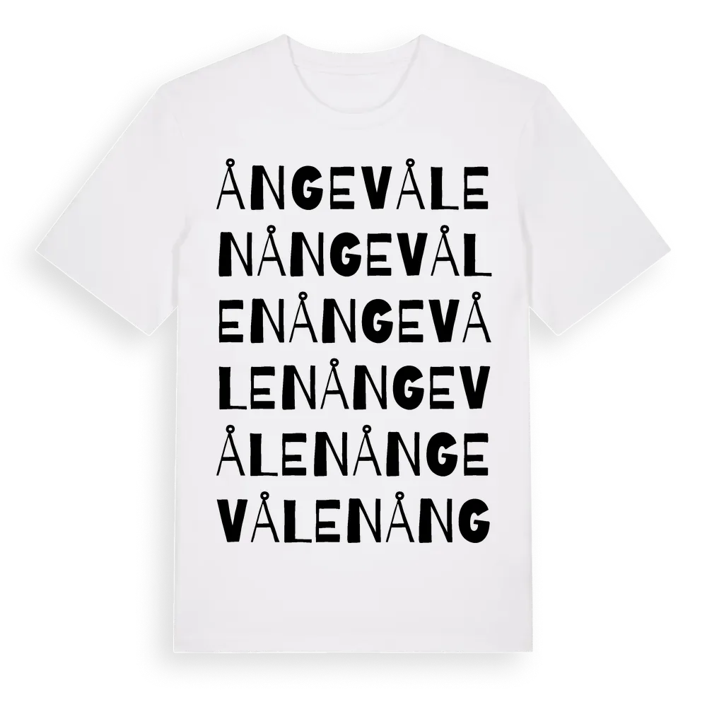 Ångevålen ordlek t-shirt är inspirerad av Ångevålen i Värmlands län, Sverige. Tröjan är designad för dig som har en speciell koppling till platsen – oavsett om du bor här, har rötterna här eller bara älskar Ångevålen.
