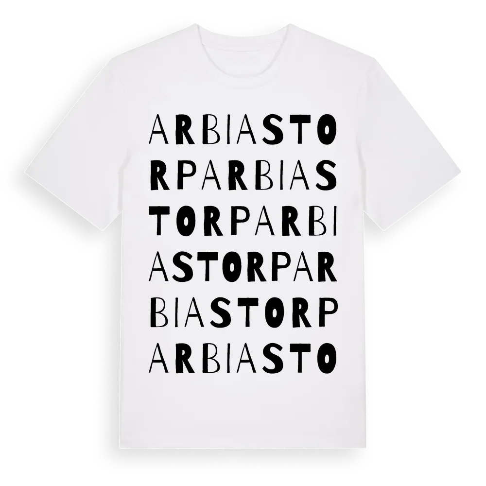 Arbiastorp ordlek t-shirt är inspirerad av Arbiastorp i Värmlands län, Sverige. Tröjan är designad för dig som har en speciell koppling till platsen – oavsett om du bor här, har rötterna här eller bara älskar Arbiastorp.