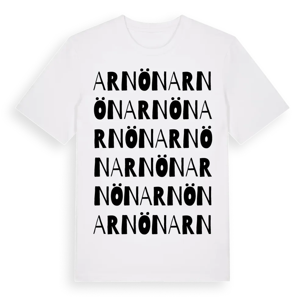 Arnön ordlek t-shirt är inspirerad av Arnön i Värmlands län, Sverige. Tröjan är designad för dig som har en speciell koppling till platsen – oavsett om du bor här, har rötterna här eller bara älskar Arnön.