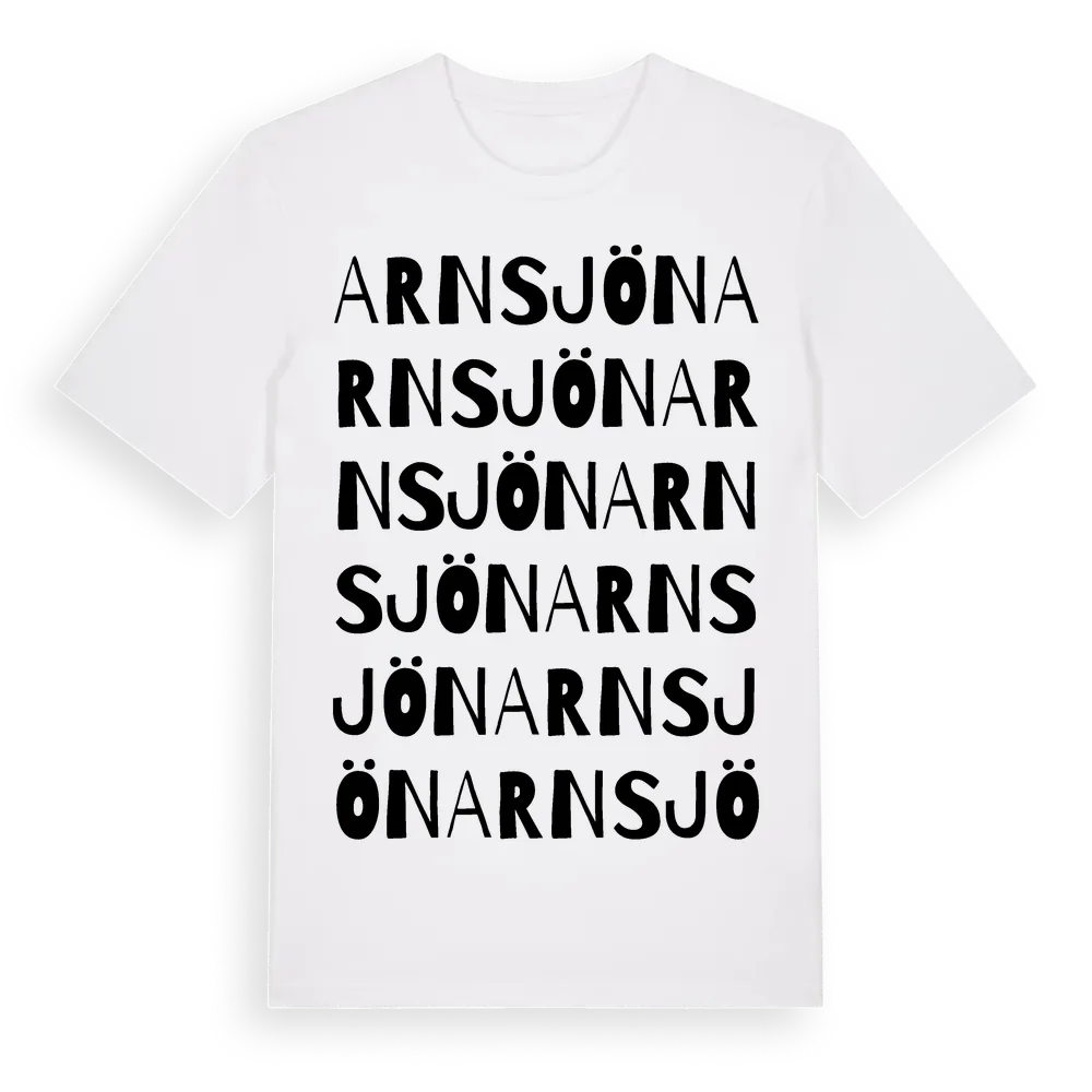 Arnsjön ordlek t-shirt är inspirerad av Arnsjön i Värmlands län, Sverige. Tröjan är designad för dig som har en speciell koppling till platsen – oavsett om du bor här, har rötterna här eller bara älskar Arnsjön.