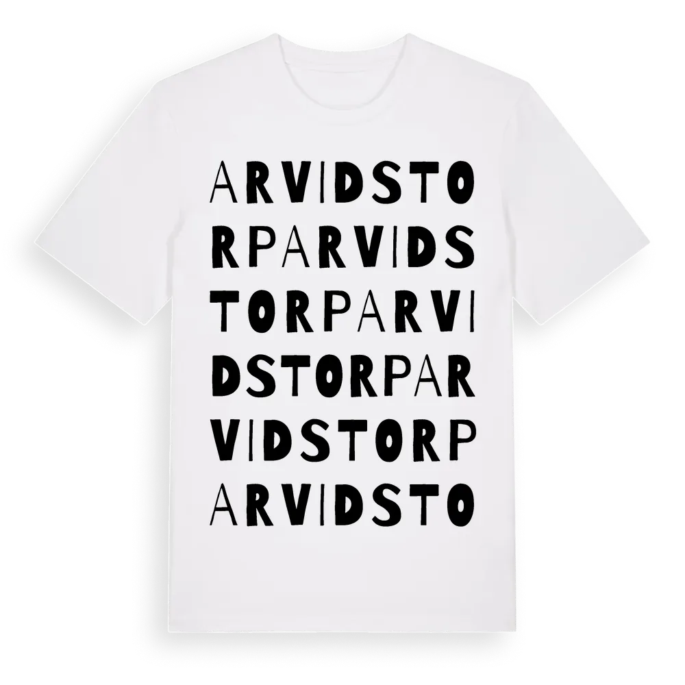 Arvidstorp ordlek t-shirt är inspirerad av Arvidstorp i Värmlands län, Sverige. Tröjan är designad för dig som har en speciell koppling till platsen – oavsett om du bor här, har rötterna här eller bara älskar Arvidstorp.