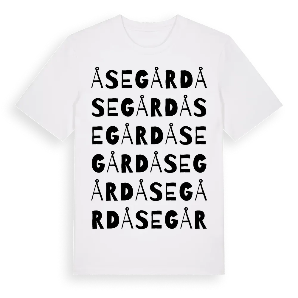 Åsegård ordlek t-shirt är inspirerad av byn Åsegård i Värmlands län, Sverige. Tröjan är designad för dig som har en speciell koppling till platsen – oavsett om du bor här, har rötterna här eller bara älskar Åsegård.