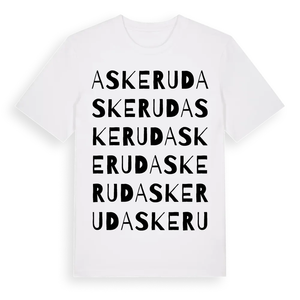Askerud ordlek t-shirt är inspirerad av Askerud i Värmlands län, Sverige. Tröjan är designad för dig som har en speciell koppling till platsen – oavsett om du bor här, har rötterna här eller bara älskar Askerud.