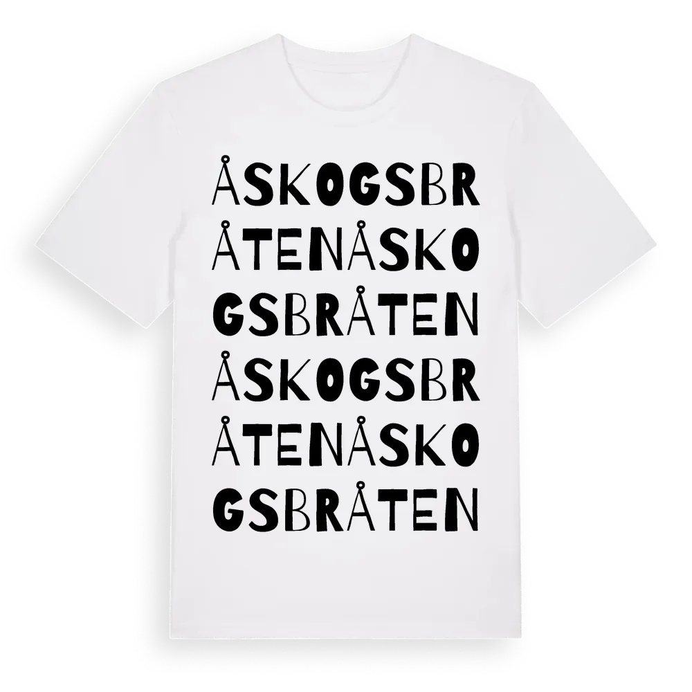 Åskogsbråten ordlek t-shirt är inspirerad av Åskogsbråten i Värmlands län, Sverige. Tröjan är designad för dig som har en speciell koppling till platsen – oavsett om du bor här, har rötterna här eller bara älskar Åskogsbråten.