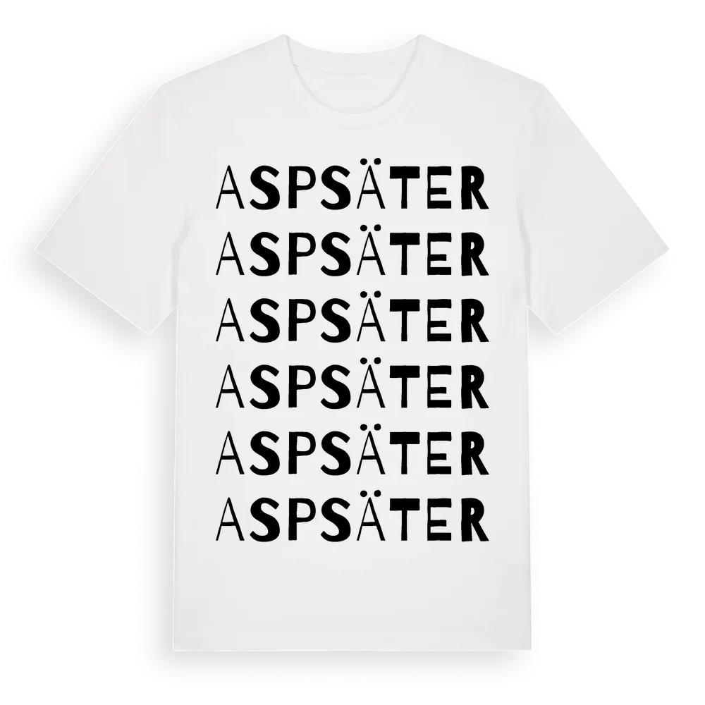 En ordlek byggd på Aspsäters namn. Subtilt och klurig – ett motiv som bara de som verkligen känner platsen fullt ut förstår. Premium bomull, unisex – från Aspsäter i Värmlands län.