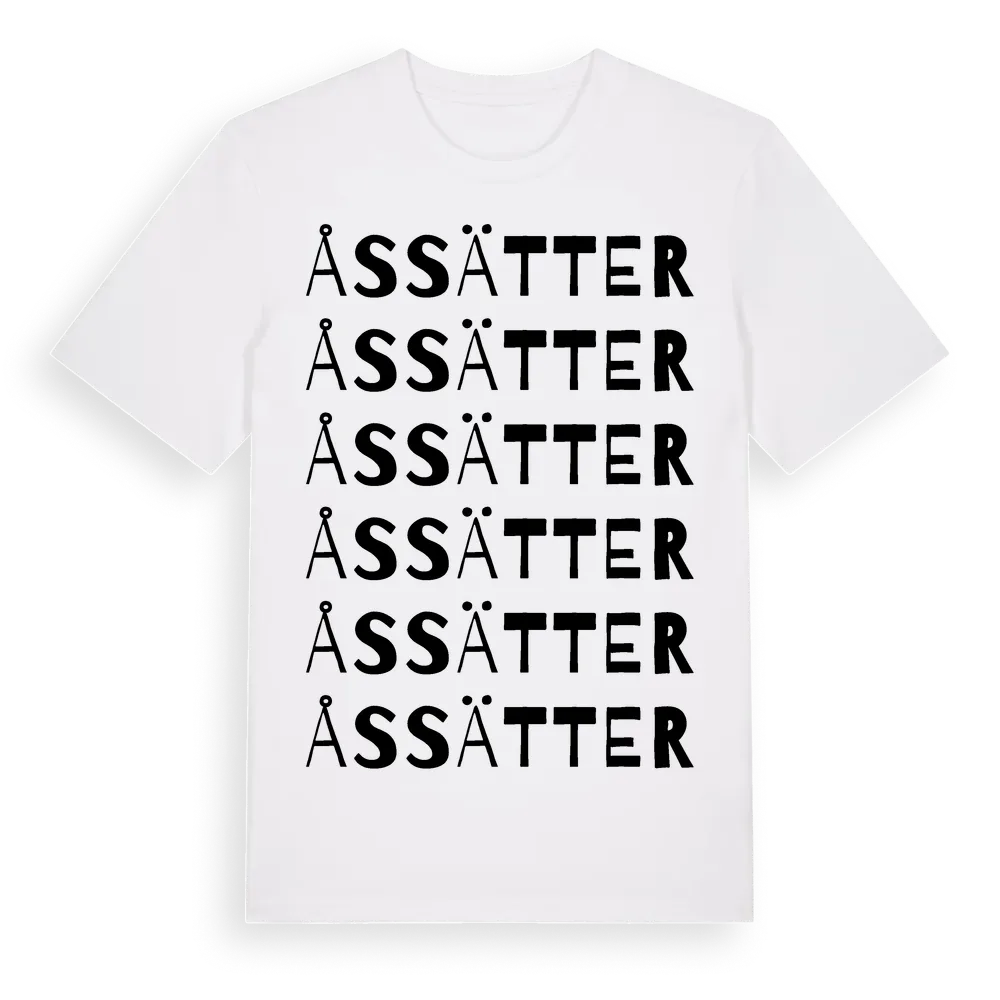 Åssätter ordlek t-shirt är inspirerad av Åssätter i Värmlands län, Sverige. Tröjan är designad för dig som har en speciell koppling till platsen – oavsett om du bor här, har rötterna här eller bara älskar Åssätter.