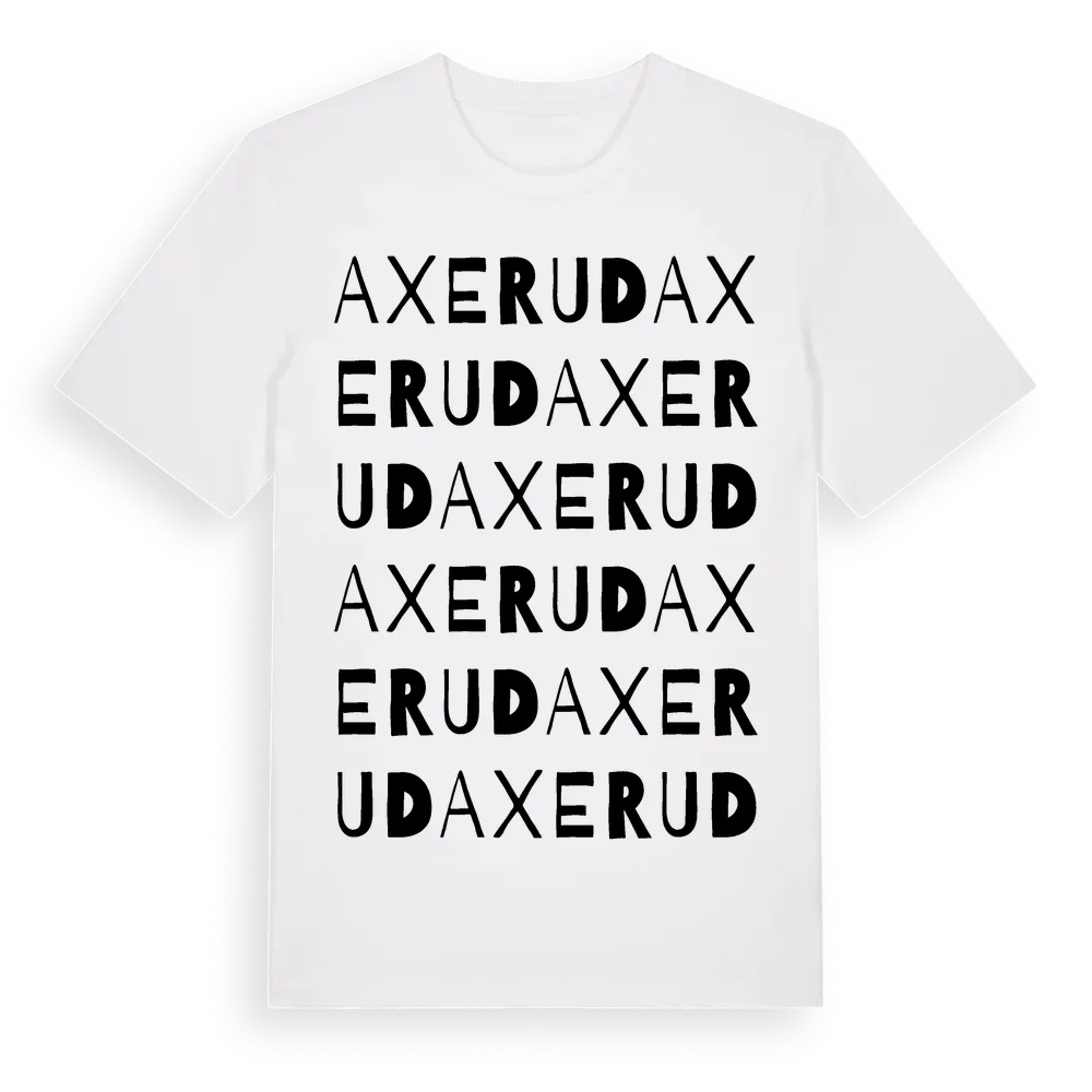Axerud ordlek t-shirt är inspirerad av Axerud i Värmlands län, Sverige. Tröjan är designad för dig som har en speciell koppling till platsen – oavsett om du bor här, har rötterna här eller bara älskar Axerud.