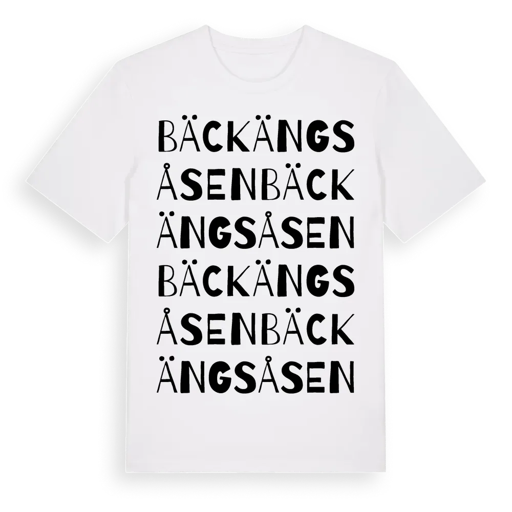 Bäckängsåsen ordlek t-shirt är inspirerad av Bäckängsåsen i Värmlands län, Sverige. Tröjan är designad för dig som har en speciell koppling till platsen – oavsett om du bor här, har rötterna här eller bara älskar Bäckängsåsen.