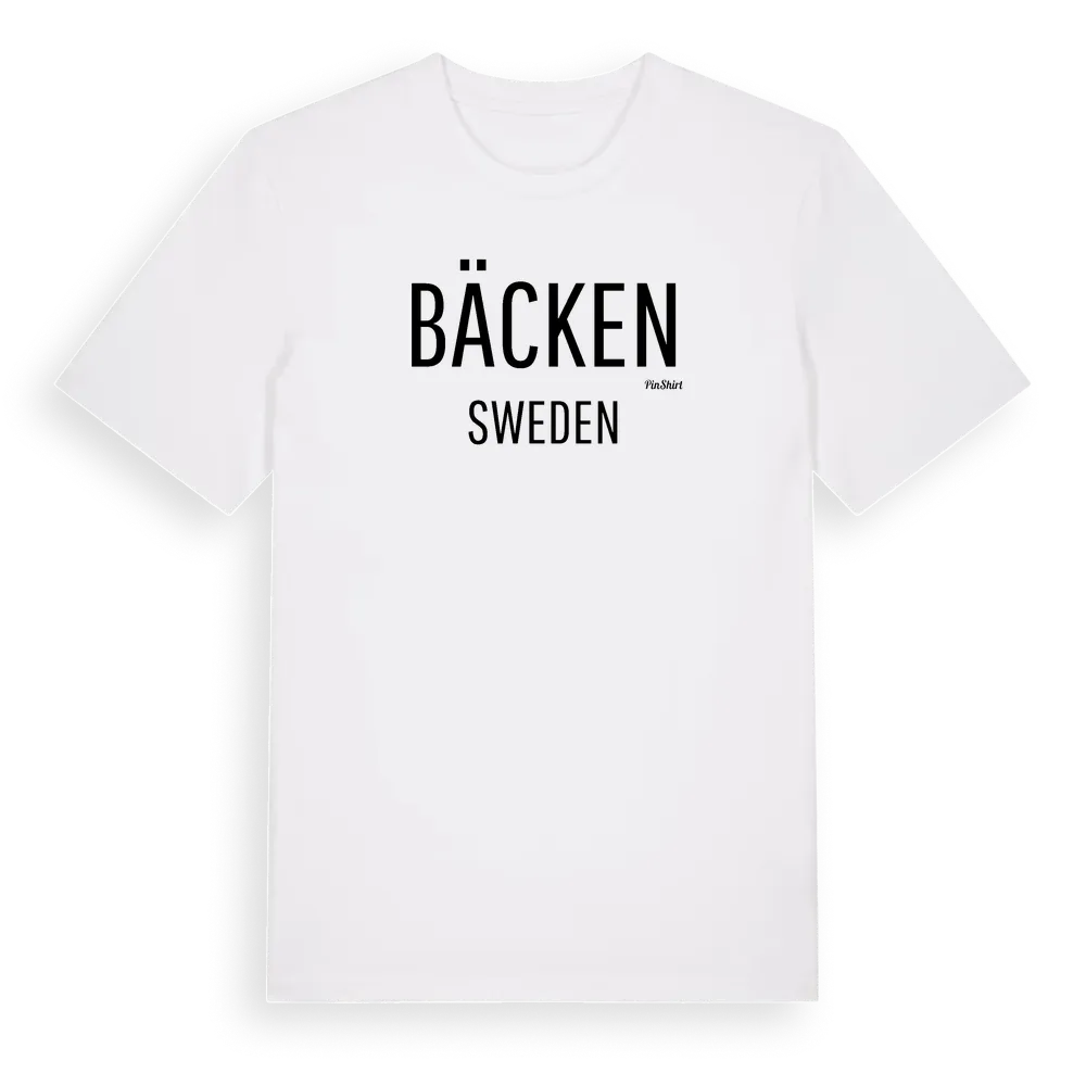 Bäcken i Sverige t-shirt är inspirerad av Bäcken i Värmlands län, Sverige. Tröjan är designad för dig som har en speciell koppling till platsen – oavsett om du bor här, har rötterna här eller bara älskar Bäcken.