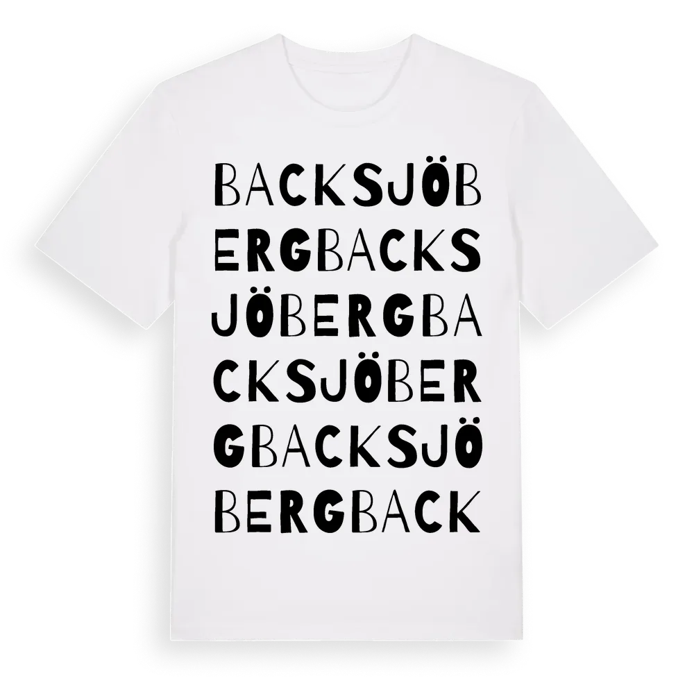 Backsjöberg ordlek t-shirt är inspirerad av Backsjöberg i Värmlands län, Sverige. Tröjan är designad för dig som har en speciell koppling till platsen – oavsett om du bor här, har rötterna här eller bara älskar Backsjöberg.