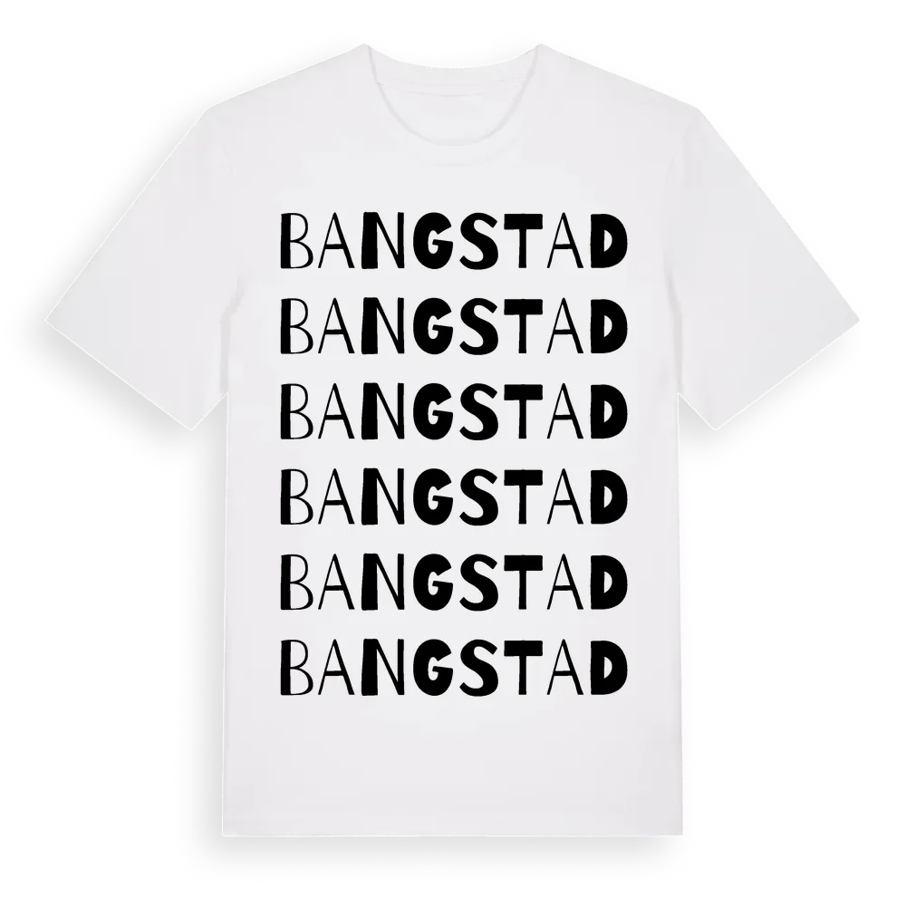 Bangstad ordlek t-shirt är inspirerad av byn Bangstad i Värmlands län, Sverige. Tröjan är designad för dig som har en speciell koppling till platsen – oavsett om du bor här, har rötterna här eller bara älskar Bangstad.