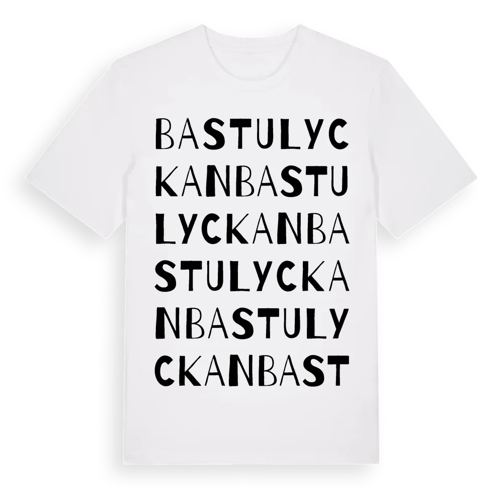 En ordlek byggd på Bastulyckans namn. Subtilt och klurig – ett motiv som bara de som verkligen känner platsen fullt ut förstår. Premium bomull, unisex – från Bastulyckan i Värmlands län.