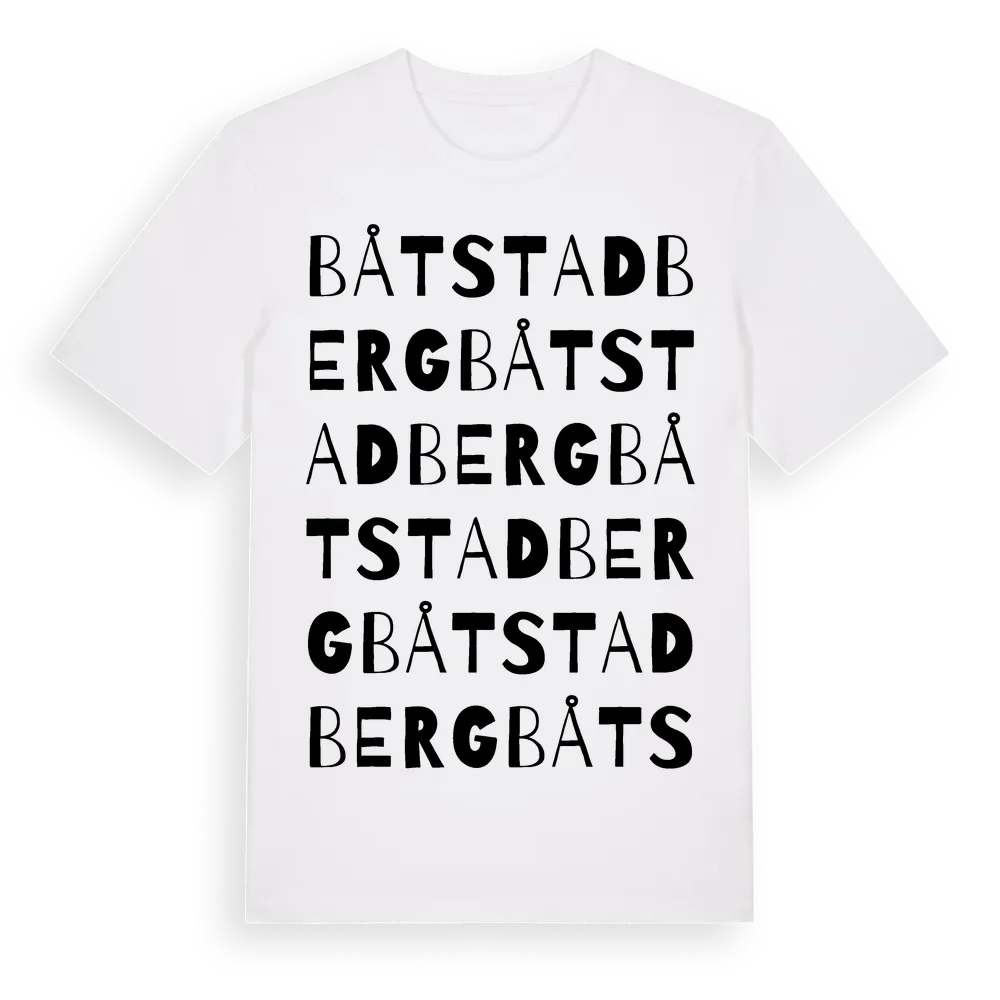 Båtstadberg ordlek t-shirt är inspirerad av byn Båtstadberg i Värmlands län, Sverige. Tröjan är designad för dig som har en speciell koppling till platsen – oavsett om du bor här, har rötterna här eller bara älskar Båtstadberg.