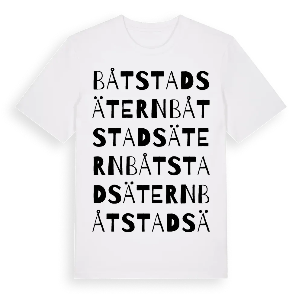 Båtstadsätern ordlek t-shirt är inspirerad av Båtstadsätern i Värmlands län, Sverige. Tröjan är designad för dig som har en speciell koppling till platsen – oavsett om du bor här, har rötterna här eller bara älskar Båtstadsätern.