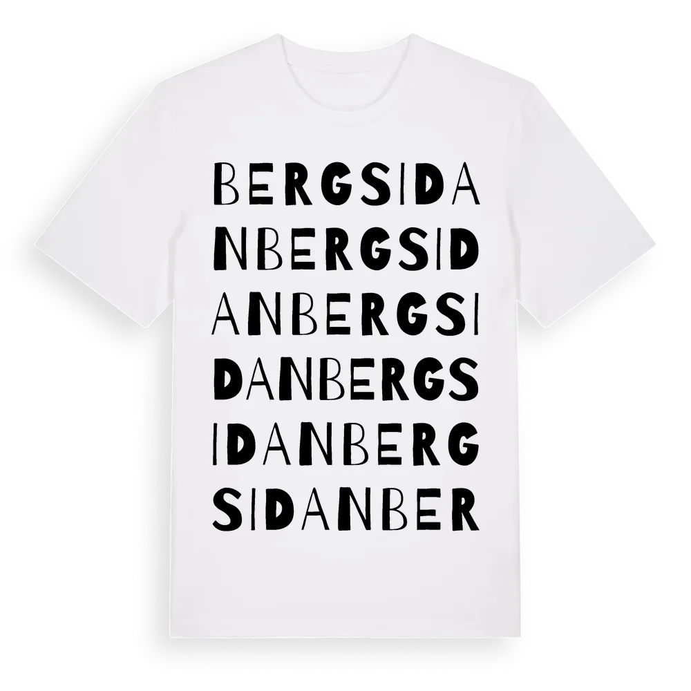 Bergsidan ordlek t-shirt är inspirerad av byn Bergsidan i Värmlands län, Sverige. Tröjan är designad för dig som har en speciell koppling till platsen – oavsett om du bor här, har rötterna här eller bara älskar Bergsidan.