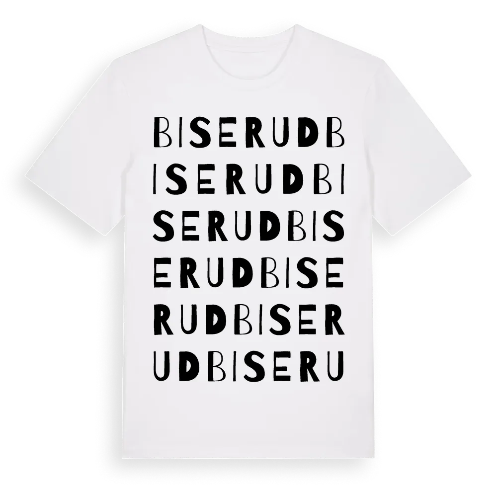 Biserud ordlek t-shirt är inspirerad av Biserud i Värmlands län, Sverige. Tröjan är designad för dig som har en speciell koppling till platsen – oavsett om du bor här, har rötterna här eller bara älskar Biserud.