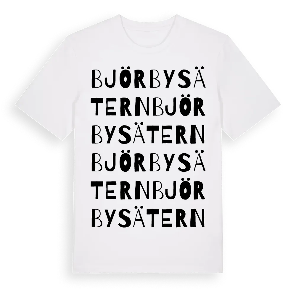 Björbysätern ordlek t-shirt är inspirerad av Björbysätern i Värmlands län, Sverige. Tröjan är designad för dig som har en speciell koppling till platsen – oavsett om du bor här, har rötterna här eller bara älskar Björbysätern.