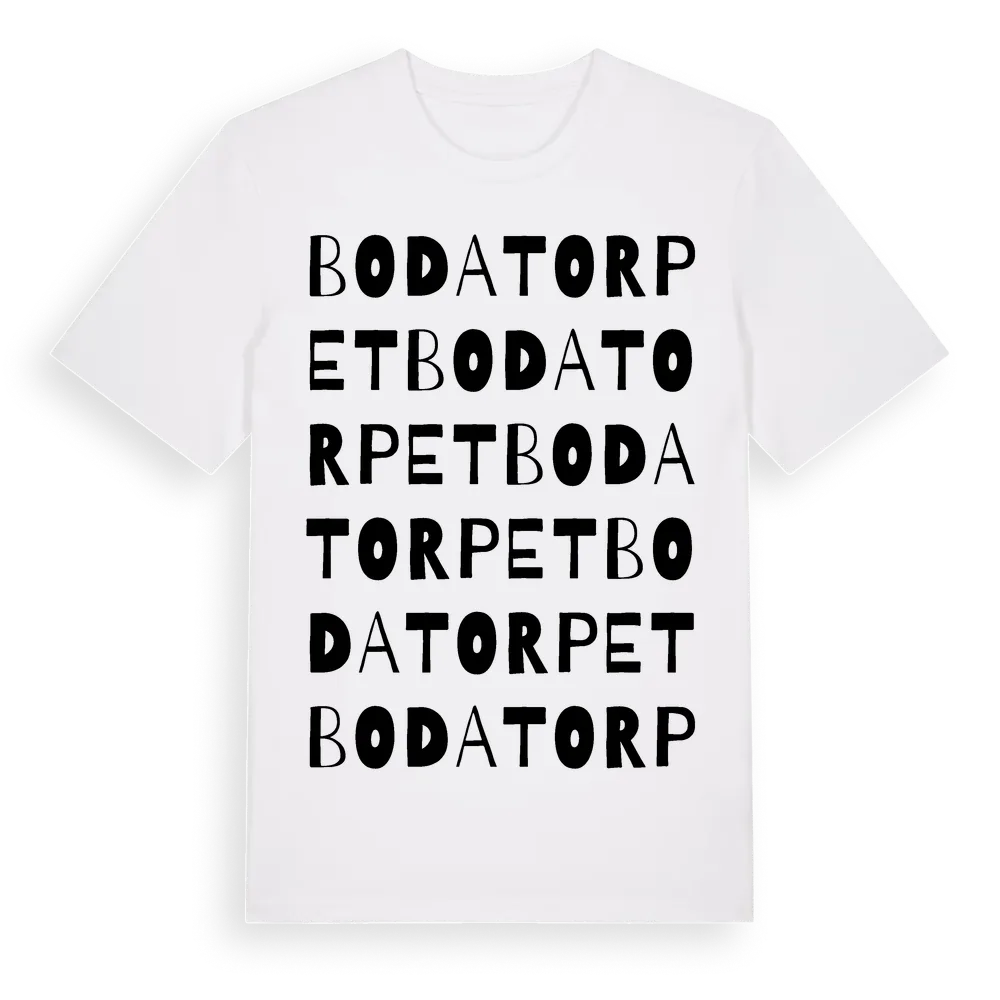 Bodatorpet ordlek t-shirt är inspirerad av Bodatorpet i Värmlands län, Sverige. Tröjan är designad för dig som har en speciell koppling till platsen – oavsett om du bor här, har rötterna här eller bara älskar Bodatorpet.