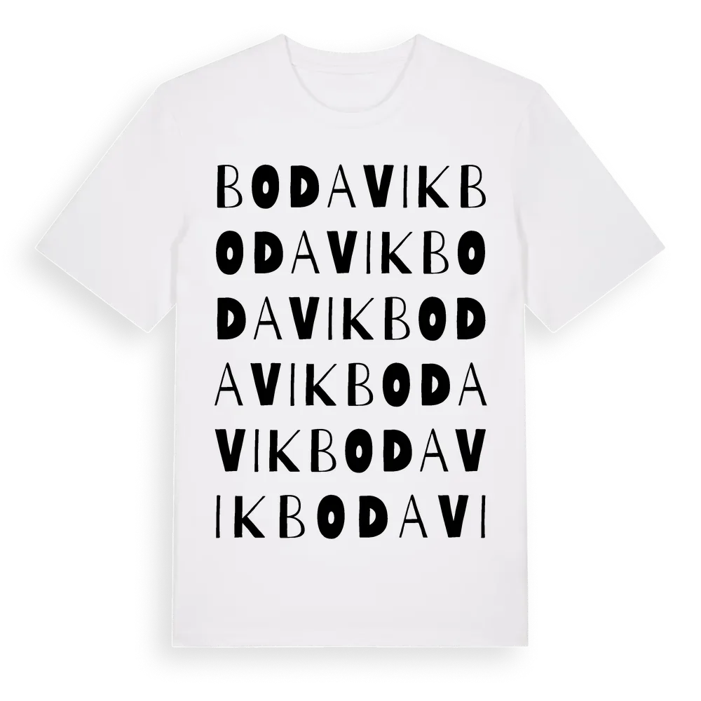 Bodavik ordlek t-shirt är inspirerad av Bodavik i Värmlands län, Sverige. Tröjan är designad för dig som har en speciell koppling till platsen – oavsett om du bor här, har rötterna här eller bara älskar Bodavik.