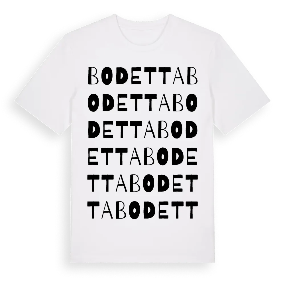 Bodetta ordlek t-shirt är inspirerad av Bodetta i Värmlands län, Sverige. Tröjan är designad för dig som har en speciell koppling till platsen – oavsett om du bor här, har rötterna här eller bara älskar Bodetta.