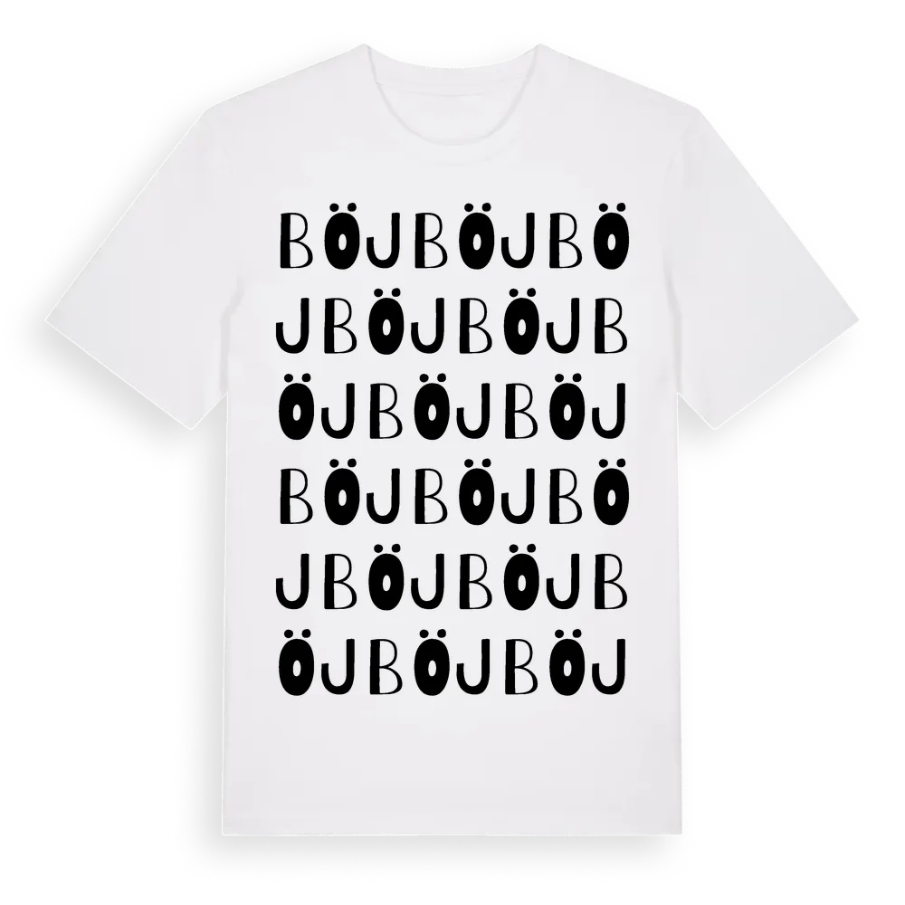 Böj ordlek t-shirt är inspirerad av byn Böj i Värmlands län, Sverige. Tröjan är designad för dig som har en speciell koppling till platsen – oavsett om du bor här, har rötterna här eller bara älskar Böj.