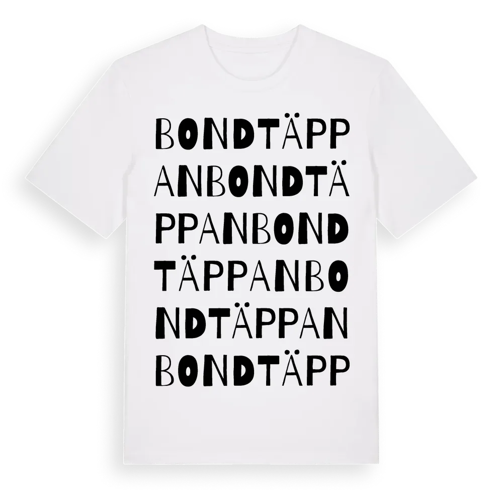 Bondtäppan ordlek t-shirt är inspirerad av Bondtäppan i Värmlands län, Sverige. Tröjan är designad för dig som har en speciell koppling till platsen – oavsett om du bor här, har rötterna här eller bara älskar Bondtäppan.