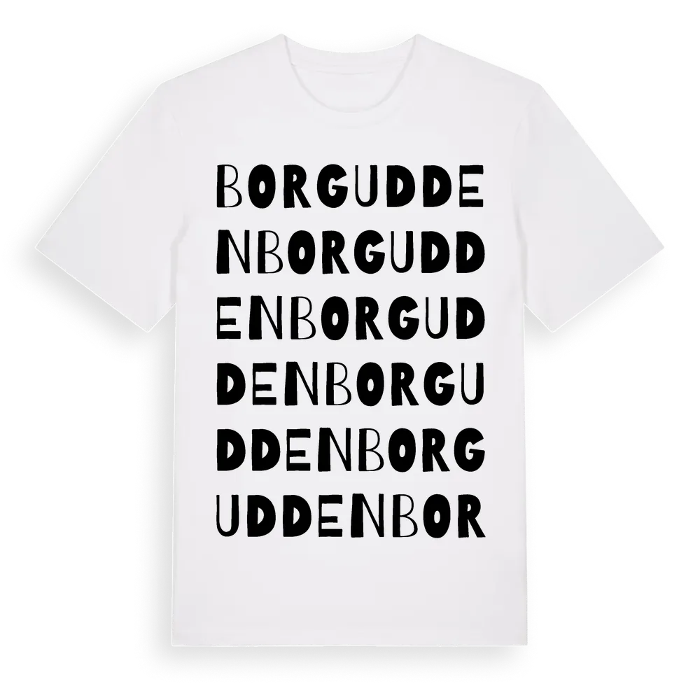 Borgudden ordlek t-shirt är inspirerad av Borgudden i Värmlands län, Sverige. Tröjan är designad för dig som har en speciell koppling till platsen – oavsett om du bor här, har rötterna här eller bara älskar Borgudden.