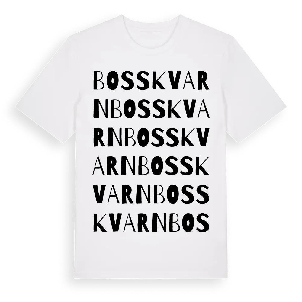 Bosskvarn ordlek t-shirt är inspirerad av Bosskvarn i Värmlands län, Sverige. Tröjan är designad för dig som har en speciell koppling till platsen – oavsett om du bor här, har rötterna här eller bara älskar Bosskvarn.