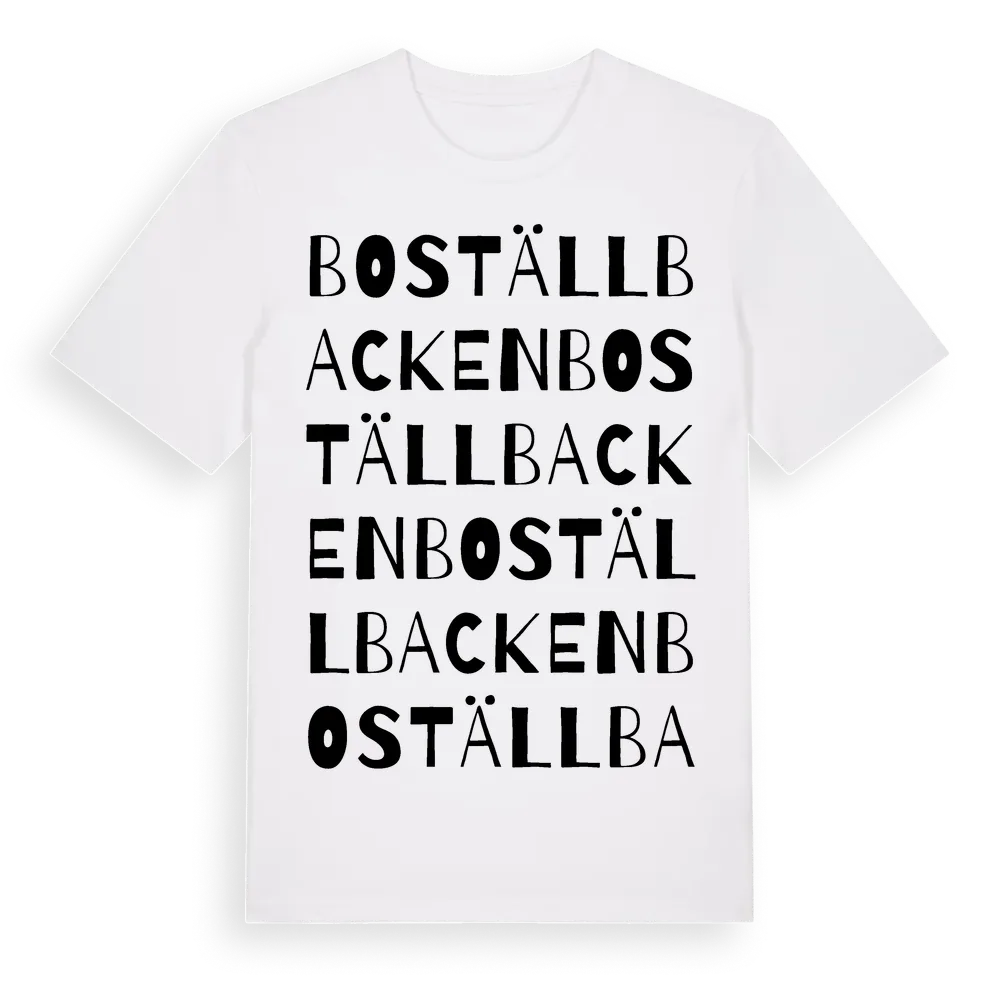 Boställbacken ordlek t-shirt är inspirerad av Boställbacken i Värmlands län, Sverige. Tröjan är designad för dig som har en speciell koppling till platsen – oavsett om du bor här, har rötterna här eller bara älskar Boställbacken.