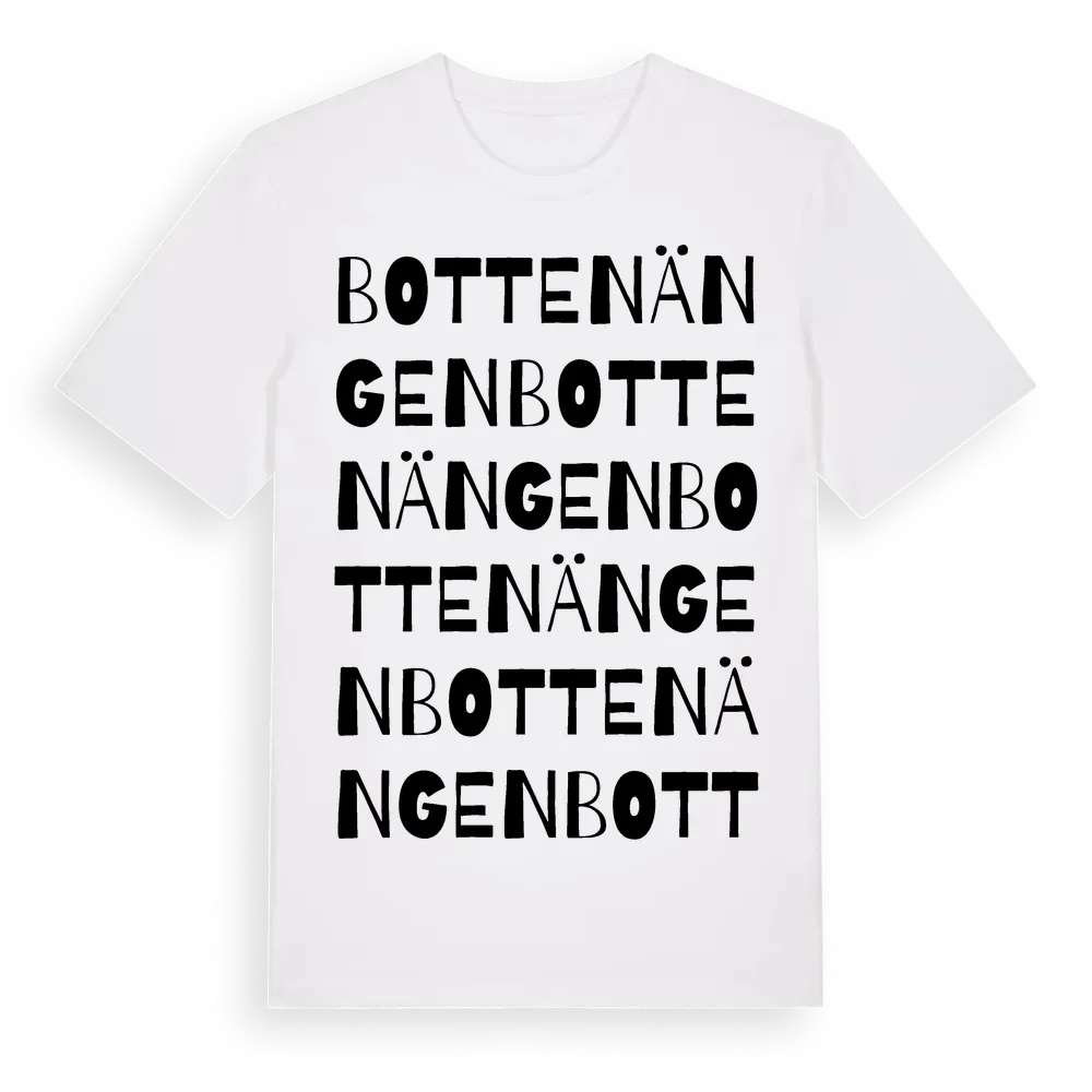 Bottenängen ordlek t-shirt är inspirerad av byn Bottenängen i Värmlands län, Sverige. Tröjan är designad för dig som har en speciell koppling till platsen – oavsett om du bor här, har rötterna här eller bara älskar Bottenängen.