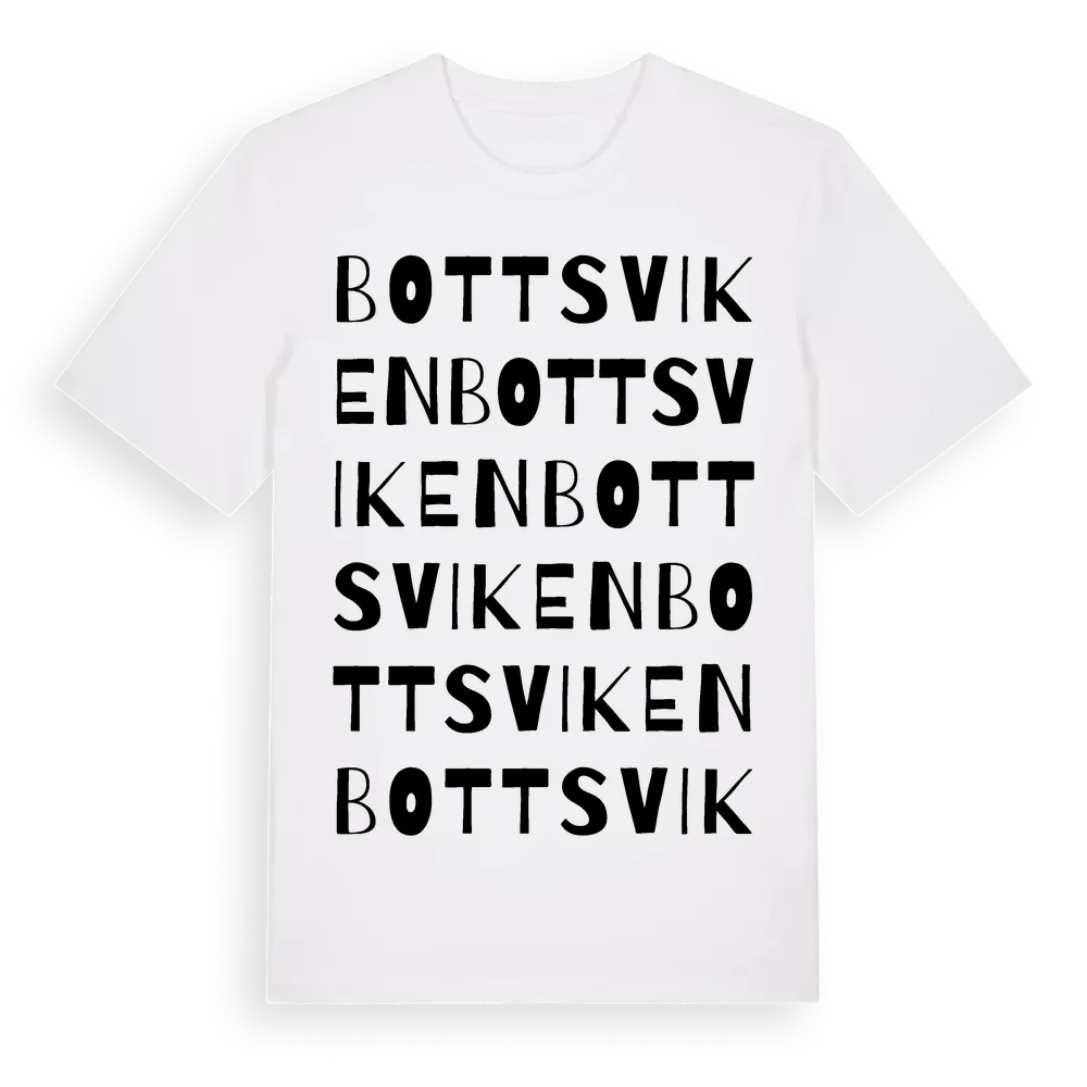 Bottsviken ordlek t-shirt är inspirerad av byn Bottsviken i Värmlands län, Sverige. Tröjan är designad för dig som har en speciell koppling till platsen – oavsett om du bor här, har rötterna här eller bara älskar Bottsviken.