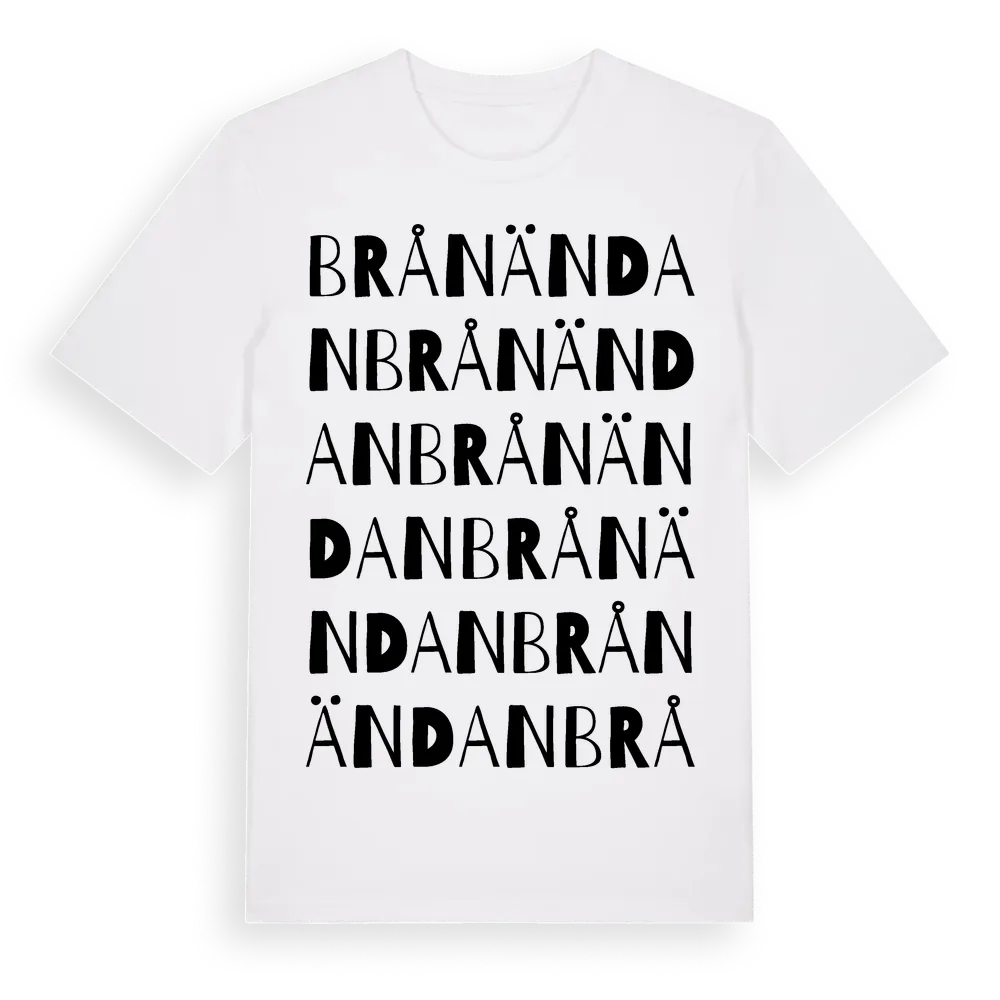 En ordlek byggd på Brånändans namn. Subtilt och klurig – ett motiv som bara de som verkligen känner platsen fullt ut förstår. Premium bomull, unisex – från Brånändan i Värmlands län.