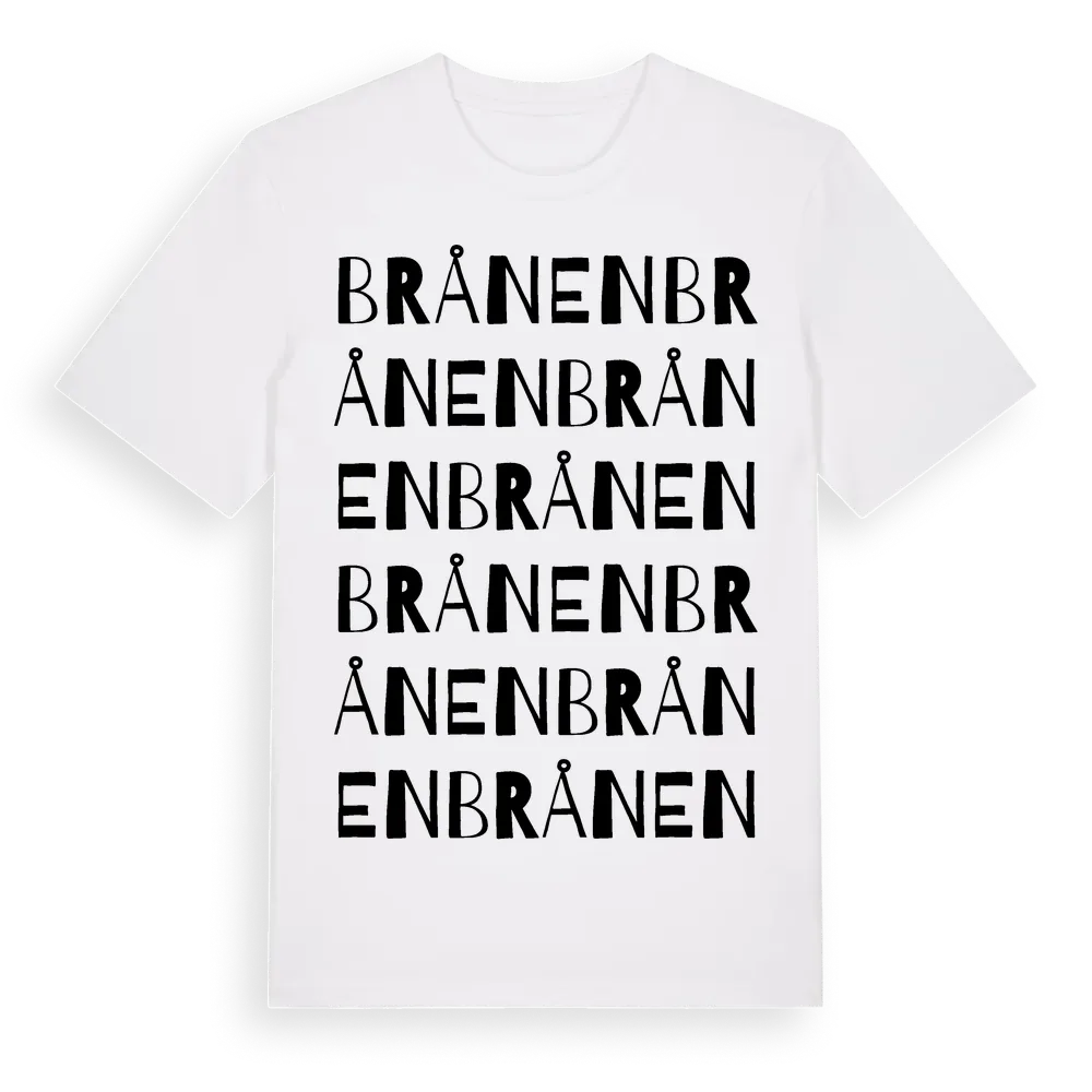 Brånen ordlek t-shirt är inspirerad av Brånen i Värmlands län, Sverige. Tröjan är designad för dig som har en speciell koppling till platsen – oavsett om du bor här, har rötterna här eller bara älskar Brånen.