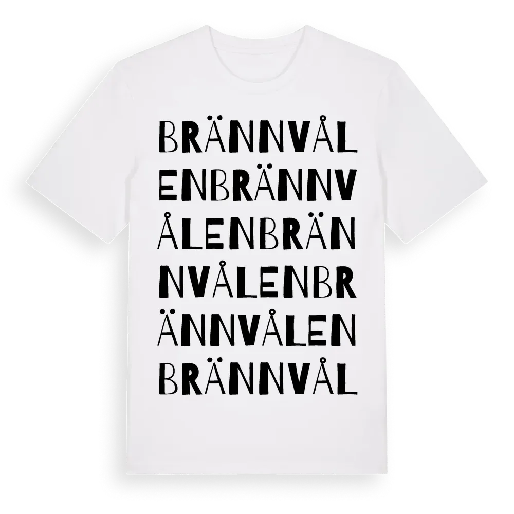 Brännvålen ordlek t-shirt är inspirerad av Brännvålen i Värmlands län, Sverige. Tröjan är designad för dig som har en speciell koppling till platsen – oavsett om du bor här, har rötterna här eller bara älskar Brännvålen.