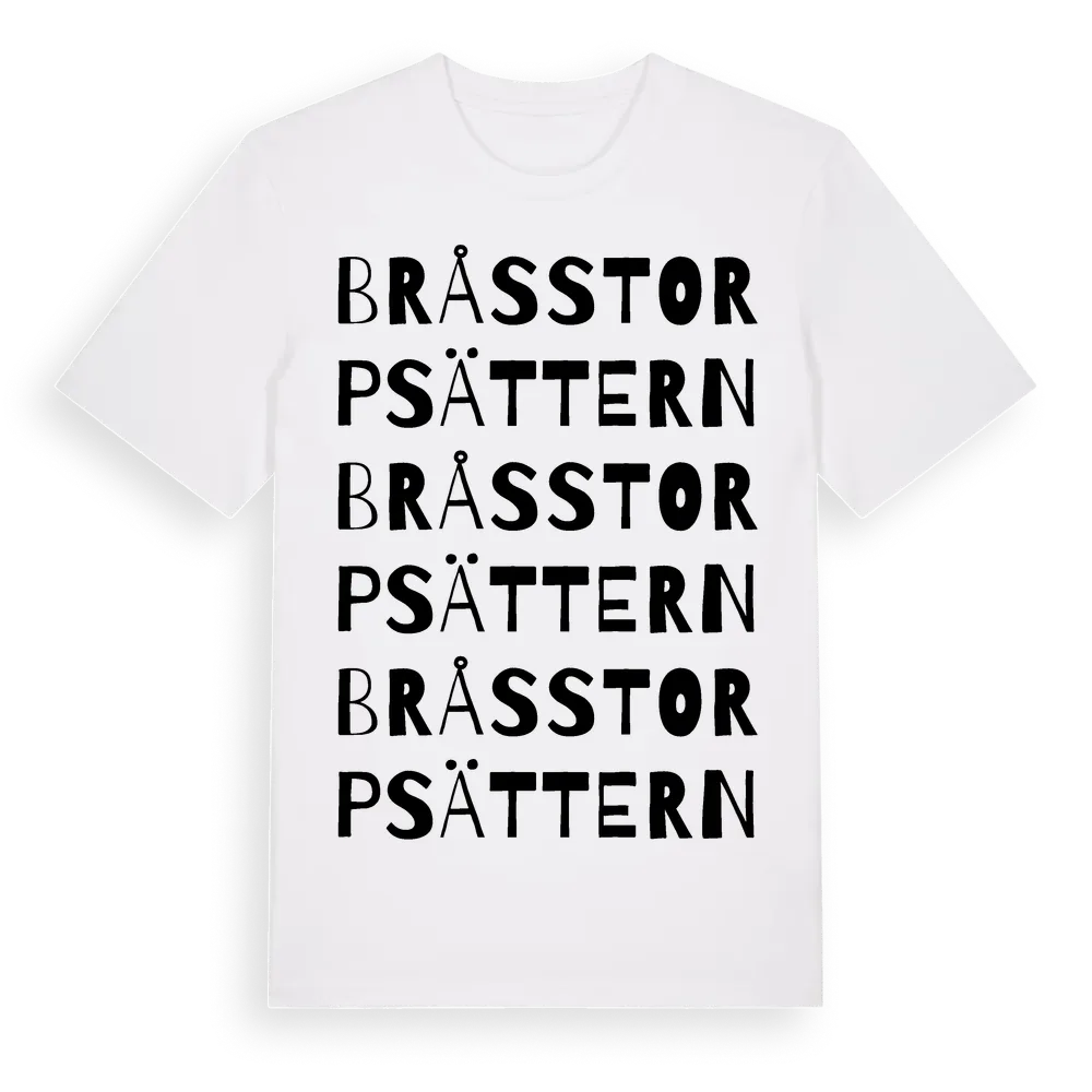 Bråsstorpsättern ordlek t-shirt är inspirerad av Bråsstorpsättern i Värmlands län, Sverige. Tröjan är designad för dig som har en speciell koppling till platsen – oavsett om du bor här, har rötterna här eller bara älskar Bråsstorpsättern.