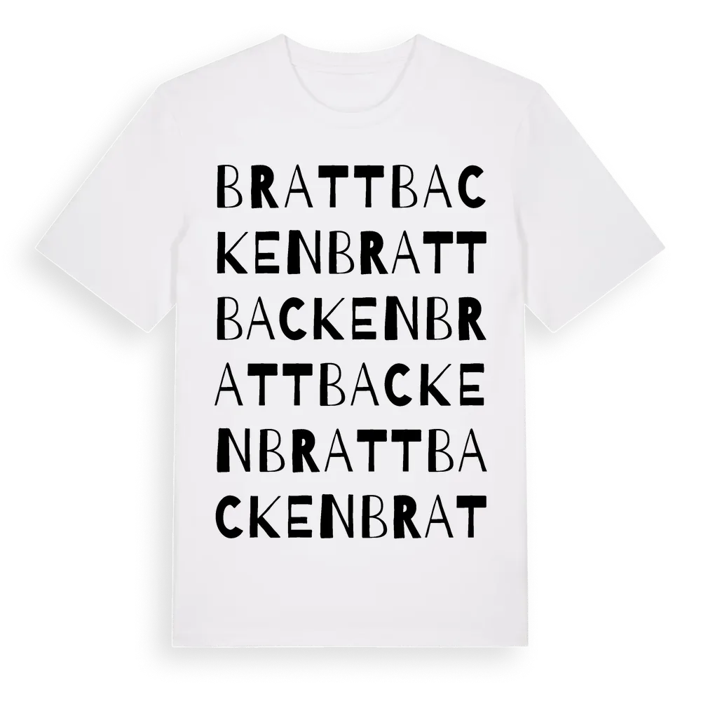 Brattbacken ordlek t-shirt är inspirerad av Brattbacken i Värmlands län, Sverige. Tröjan är designad för dig som har en speciell koppling till platsen – oavsett om du bor här, har rötterna här eller bara älskar Brattbacken.