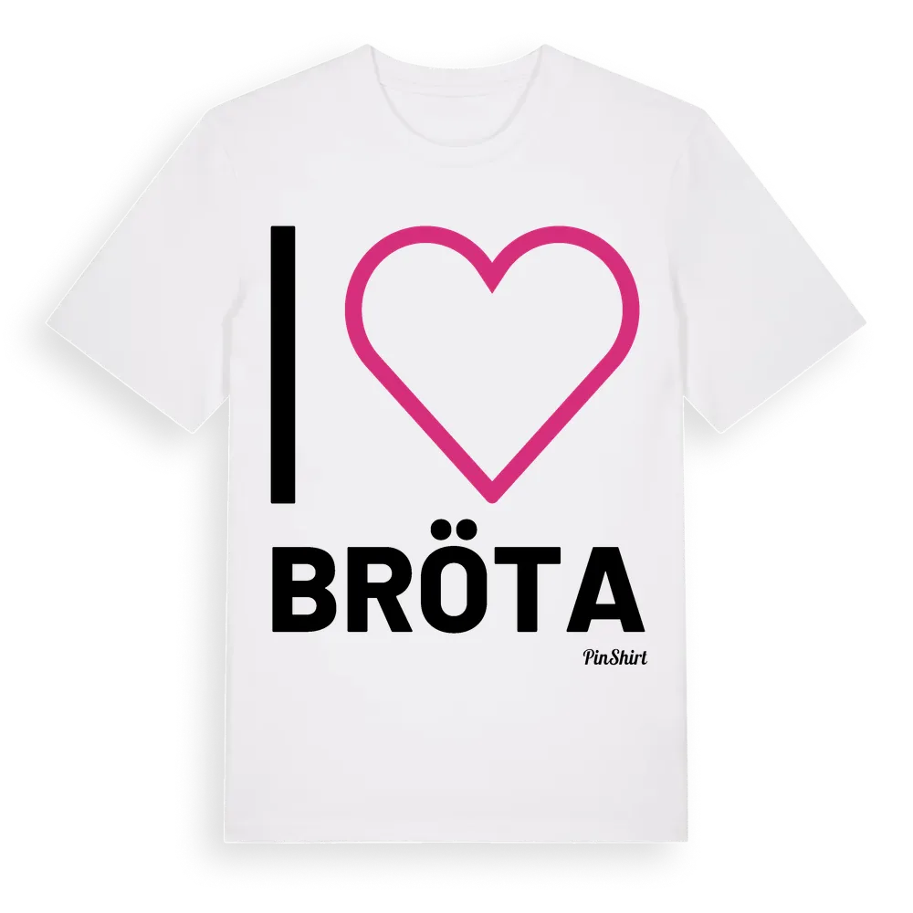 Det klassiska "I ❤ Bröta"-motivet i stort format som täcker hela bröstet. För dig som vill visa kärleken till Bröta på riktigt. Premium bomull, unisex – från Bröta i Värmlands län.