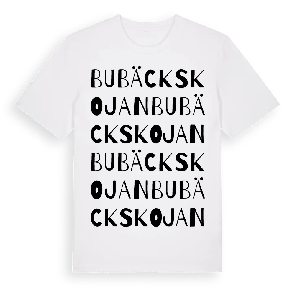 Bubäckskojan ordlek t-shirt är inspirerad av Bubäckskojan i Värmlands län, Sverige. Tröjan är designad för dig som har en speciell koppling till platsen – oavsett om du bor här, har rötterna här eller bara älskar Bubäckskojan.