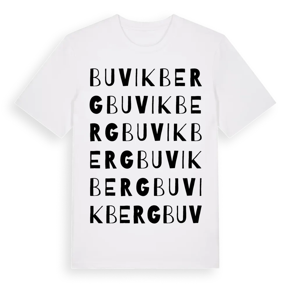 Buvikberg ordlek t-shirt är inspirerad av Buvikberg i Värmlands län, Sverige. Tröjan är designad för dig som har en speciell koppling till platsen – oavsett om du bor här, har rötterna här eller bara älskar Buvikberg.