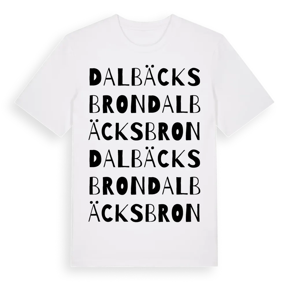 Dalbäcksbron ordlek t-shirt är inspirerad av Dalbäcksbron i Värmlands län, Sverige. Tröjan är designad för dig som har en speciell koppling till platsen – oavsett om du bor här, har rötterna här eller bara älskar Dalbäcksbron.