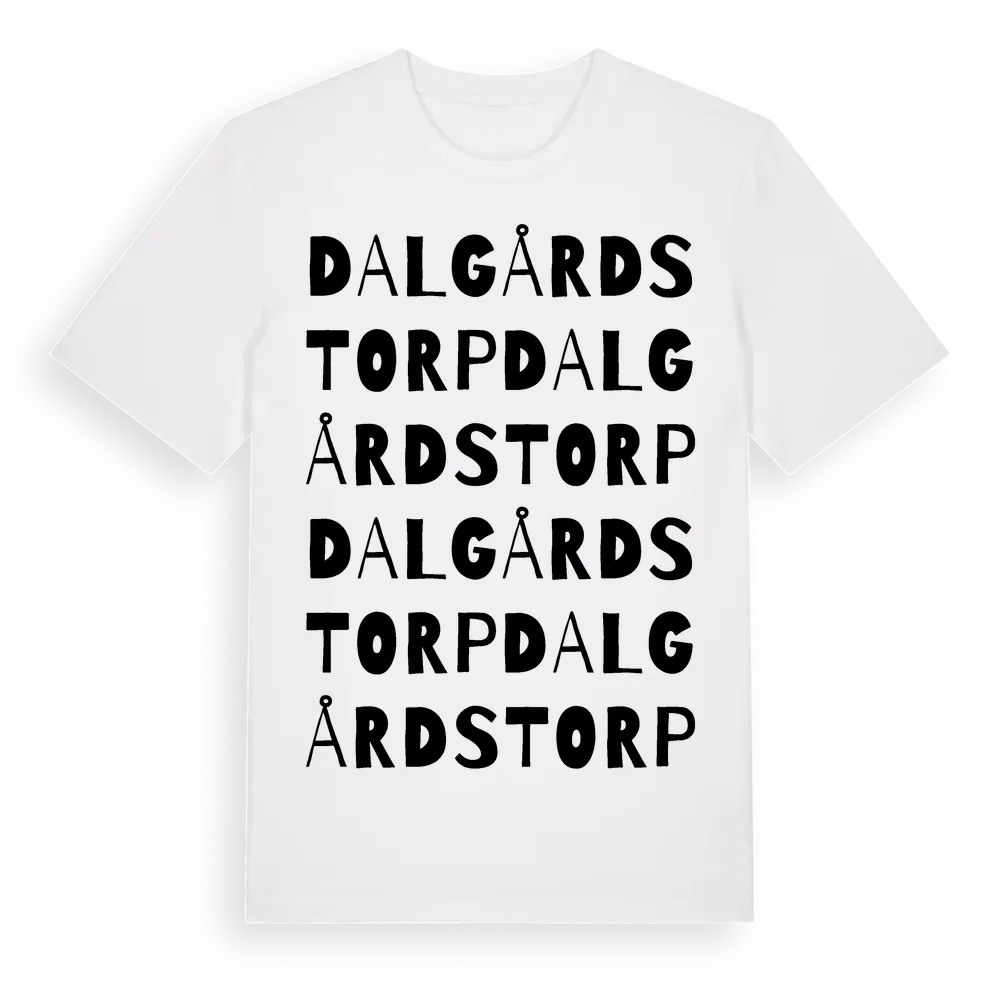 Dalgårdstorp ordlek t-shirt är inspirerad av Dalgårdstorp i Värmlands län, Sverige. Tröjan är designad för dig som har en speciell koppling till platsen – oavsett om du bor här, har rötterna här eller bara älskar Dalgårdstorp.