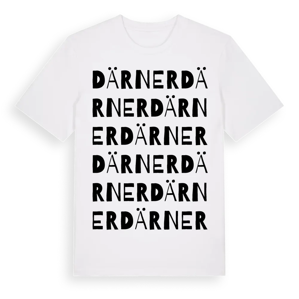 Därner ordlek t-shirt är inspirerad av Därner i Värmlands län, Sverige. Tröjan är designad för dig som har en speciell koppling till platsen – oavsett om du bor här, har rötterna här eller bara älskar Därner.